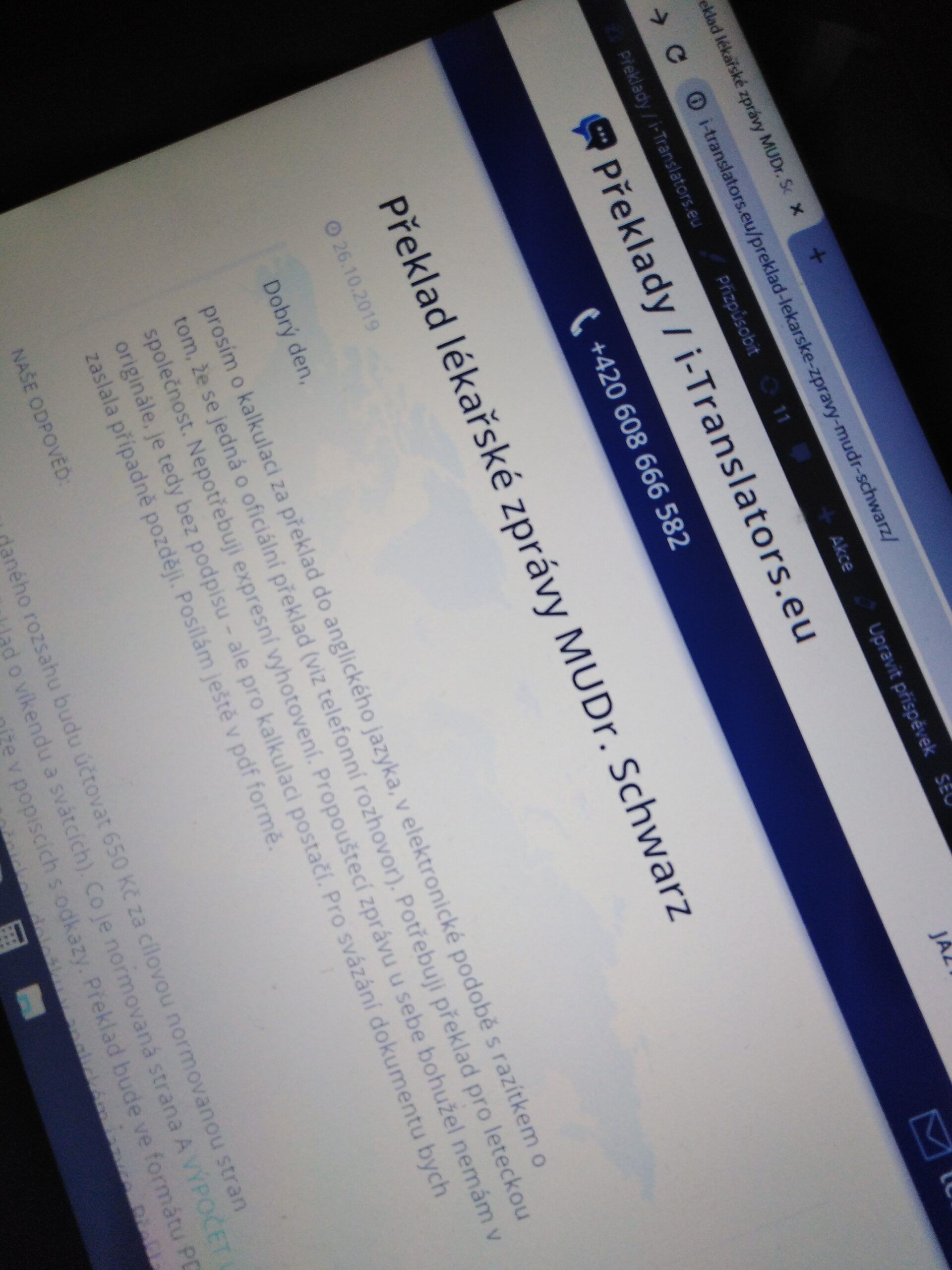 Máme pro Vás možnost rychlého vyhotovení překladu, +420 608 666 582